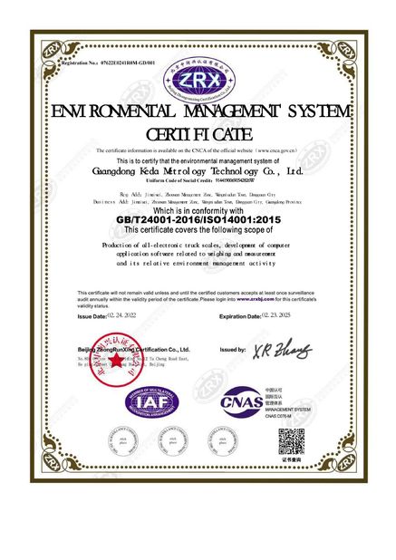 スタンダード: | GB/T24001-2016/ISO14001:2015 |