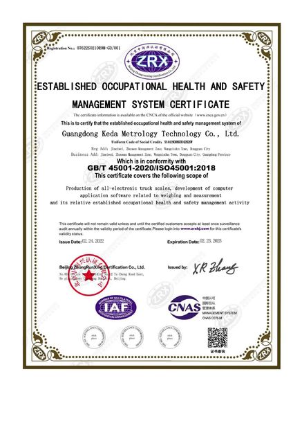 スタンダード: | GB/T 45001-2020/ISO45001:2018 |